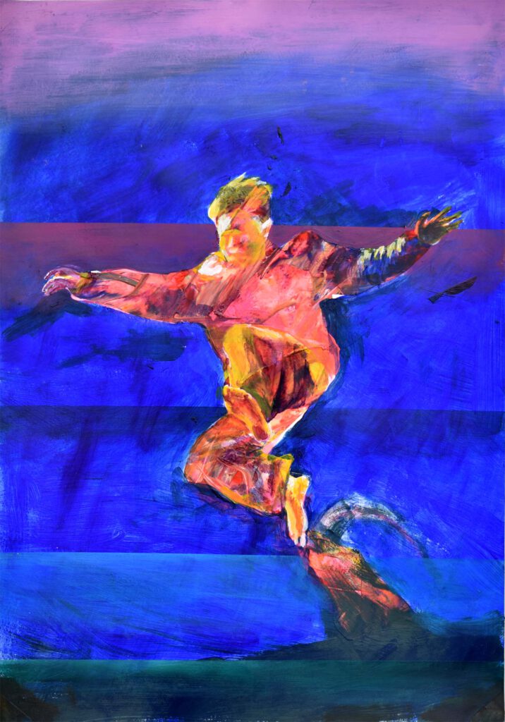2024 Öl auf Leinwand, 90 x 45 cmSchweben 2, 2024 Öl auf Leinwand, 90 x 45Schweben mit dem Schwarm, 2024, Öl auf Leinwand, 90 x 70 cmÜber dem Schwarm, 2024, Öl auf Leinwand, 90 x 70 cmVergöttlicht, 2024, Öl auf Leinwand, 90 x 70 cmHinauf, 2024, Öl auf Leinwand, 90 x 105 cmAltes hinter uns lassen, 2024, Öl auf Leinwand, 90 x 105 cm